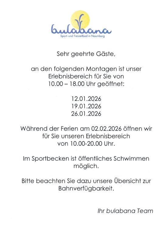 Auf diesen Internetseiten können Sie sich über die vielfältigen Angebote, die Öffnungszeiten, die Preise und den Service des »bulabana« informieren.