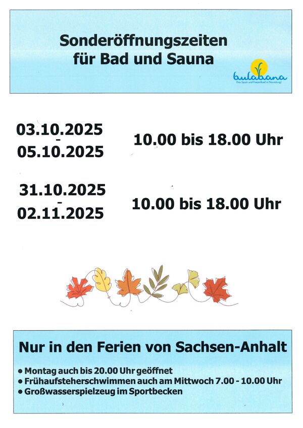 Sonderöffnungszeiten und Revisionsschließung 2025